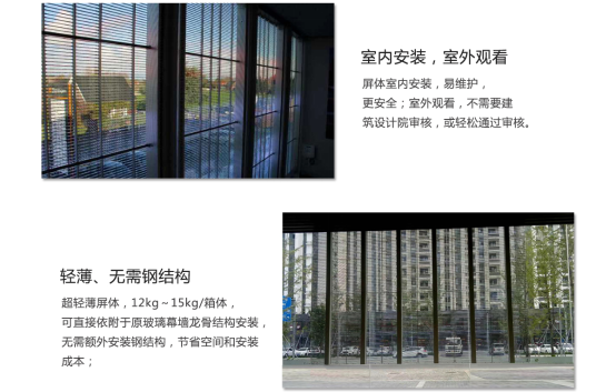 不需要傳統(tǒng)的冷凍系統(tǒng)和空調(diào)散熱,比傳統(tǒng)的LED顯示屏節(jié)能35%以上。